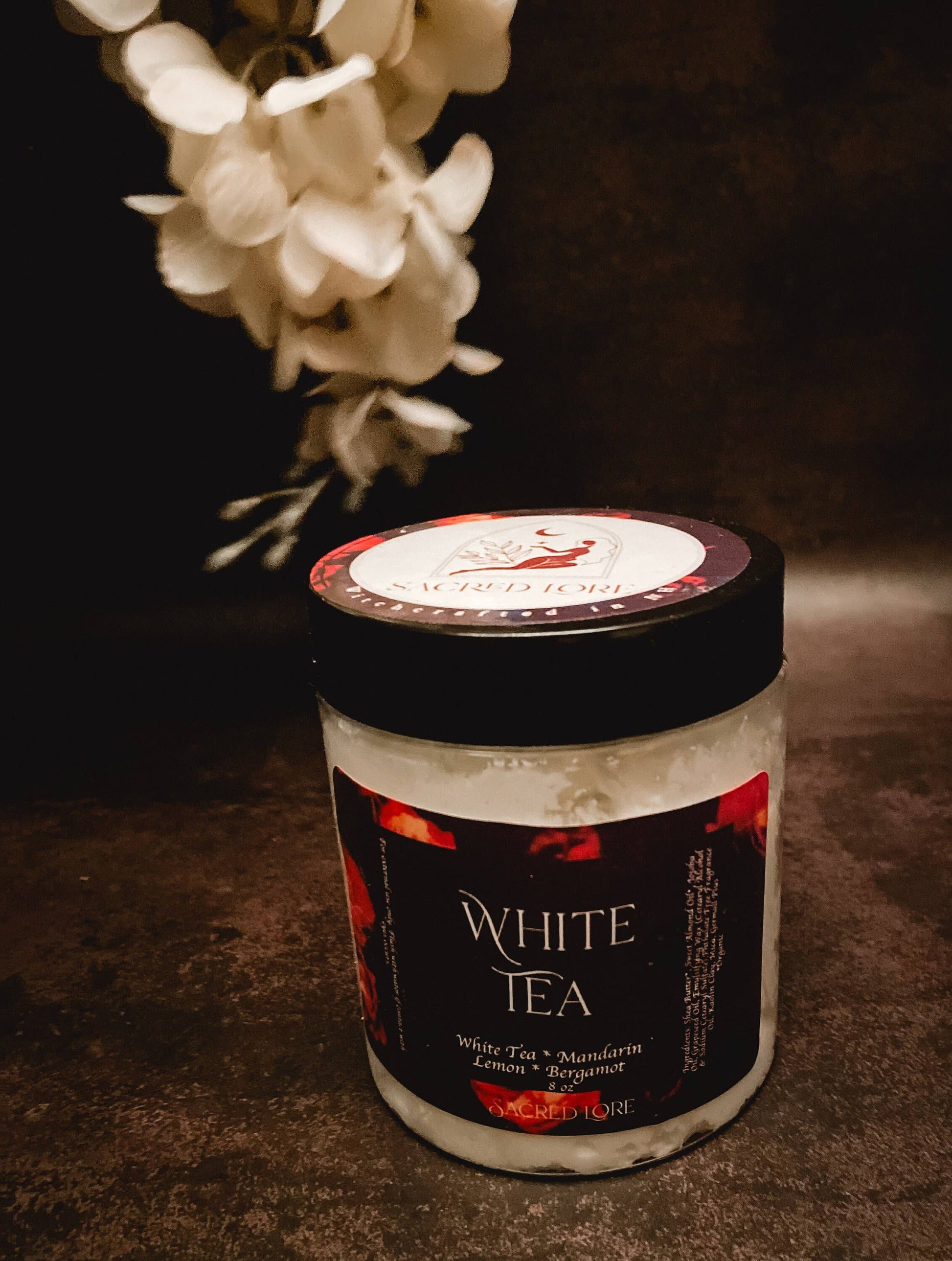 White Tea, Whipped Body Butter, Whipped Lotion, Shea Butter Lotion, Natural, Winter Skin, Dry Skin, Gentle Skincare, Vegan, Tea and Ginger I have been obsessed with this recipe for months. It was important to me that this lotion be deeply hydrating and soothing and don't leave your skin feeling sticky or oily. It is finally perfect! As always, this recipe is paraben, palm, and phthalate free. The listing is for ONE 7-ounce jar. *Organic All products are handmade and may vary from the original photo.